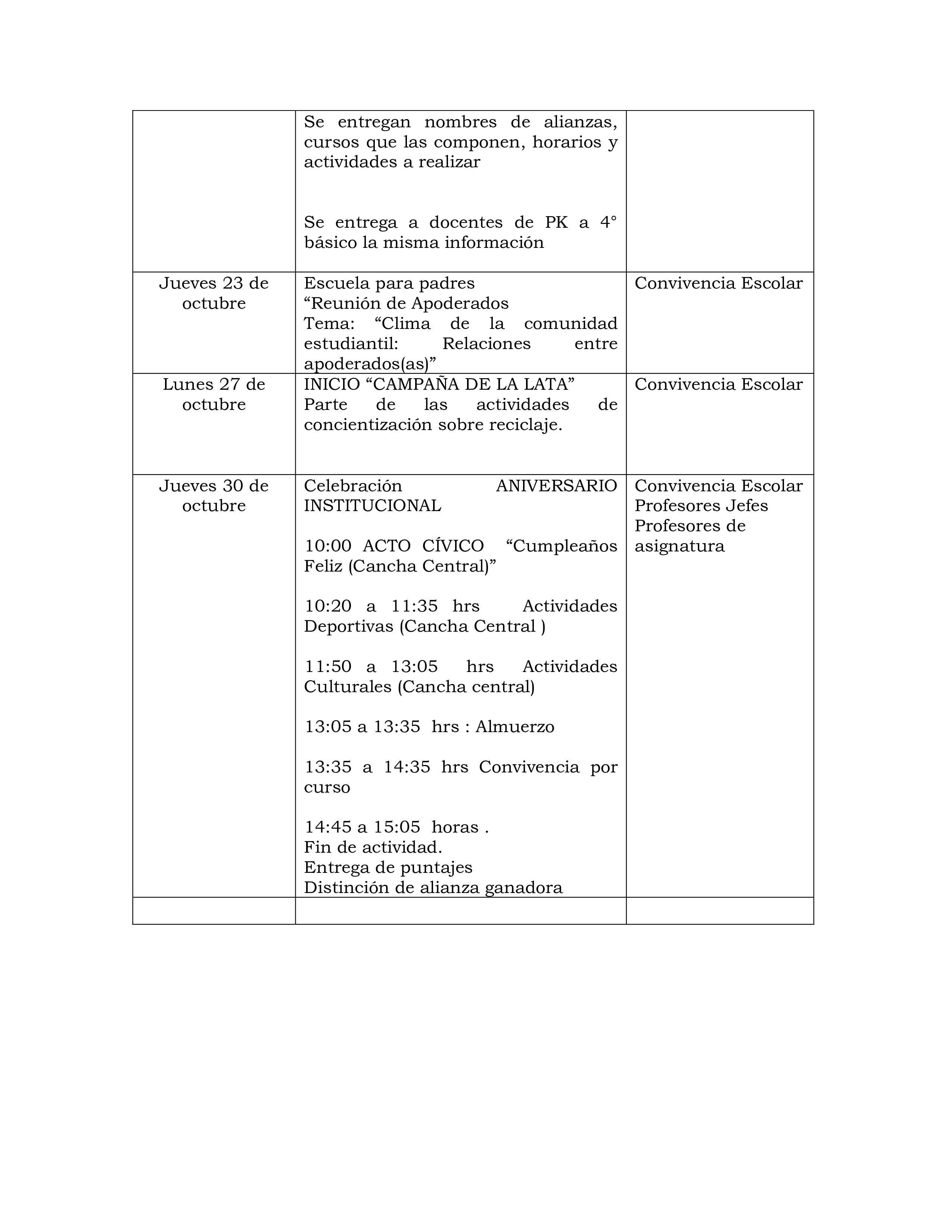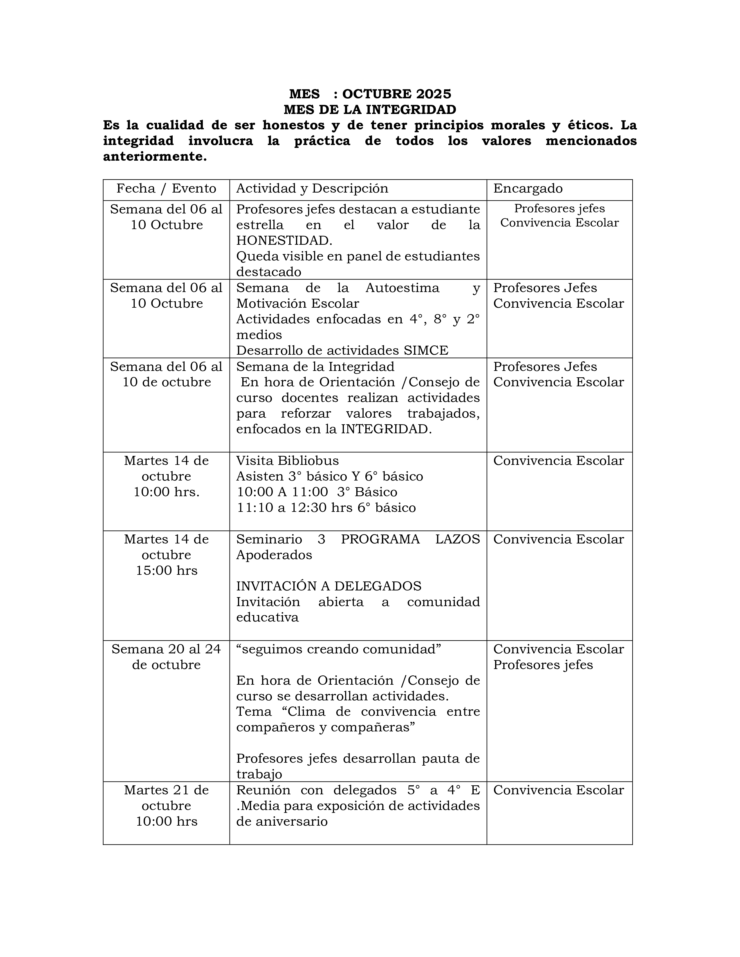 Actividades Octubre! 08/10/2025 admin Navegación de entradas Entrada anteriorHoy nuestro Colegio homenajeó a nuestra ex compañera de labores Sra. Jacqueline Susana Robles Gaete (QEPD)Entrada siguienteCITACIÓN DE PADRES Y APODERADOS