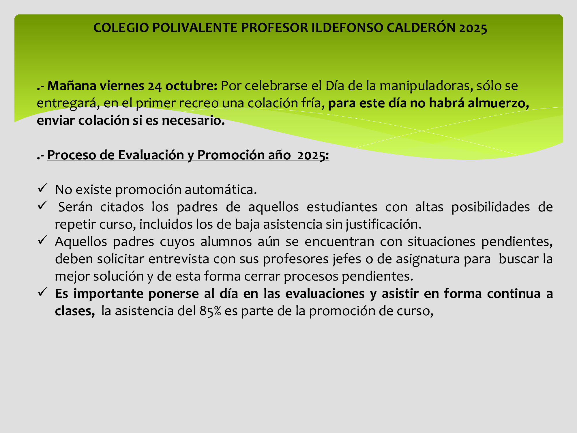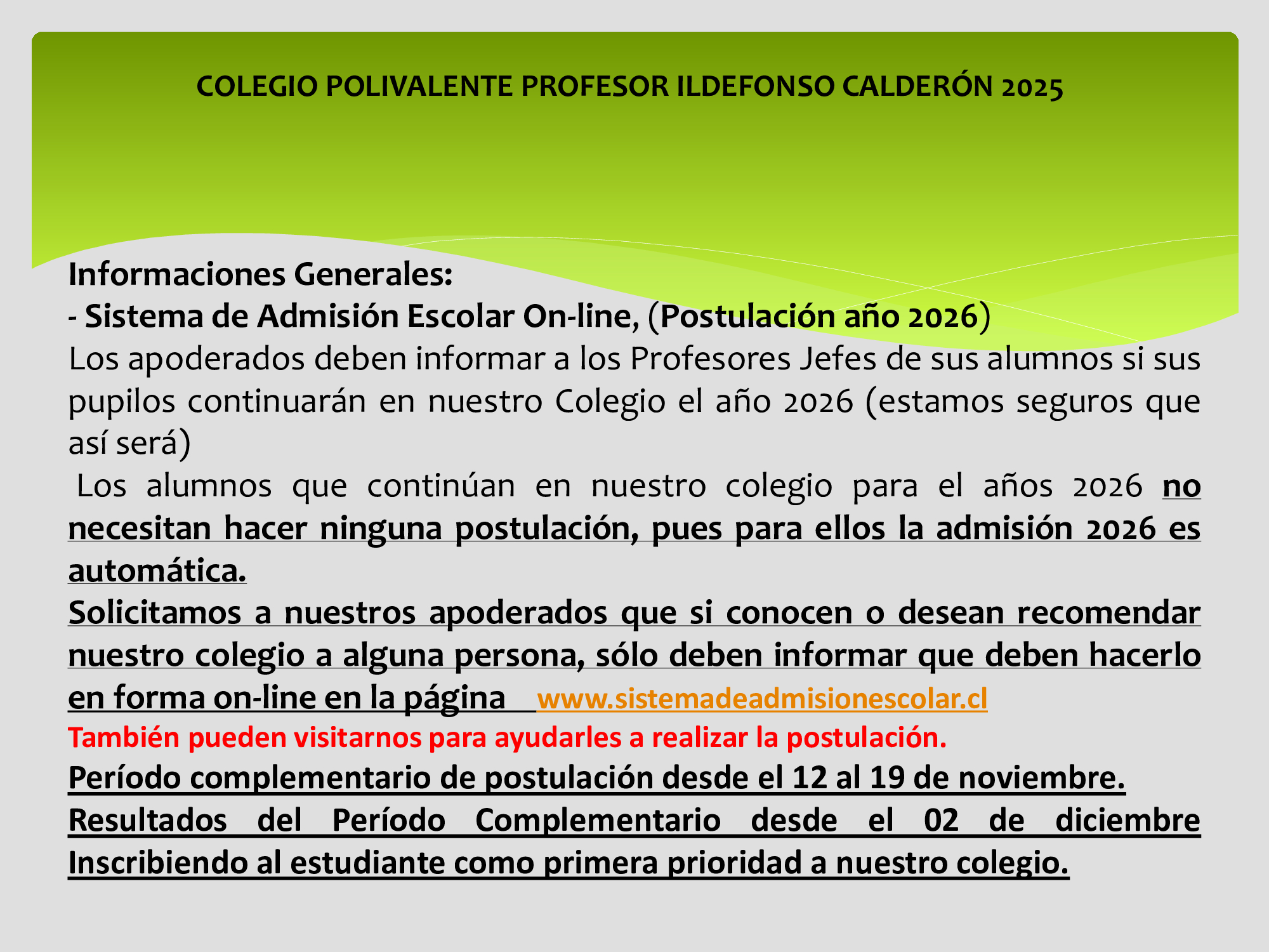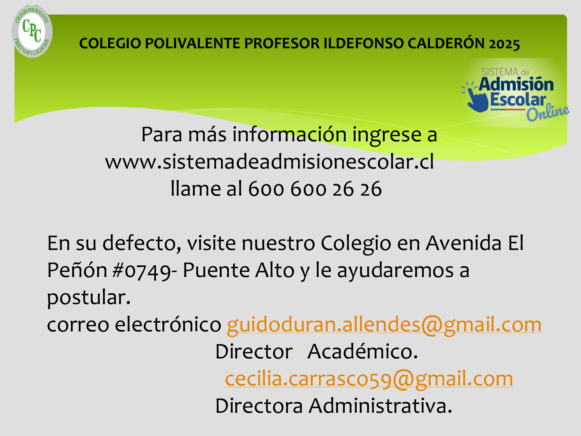 INFORMACIÓN IMPORTANTE! 23/10/2025 admin Navegación de entradas Entrada anteriorNuestros Asistentes de la Educación, Nora González y Pedro Palma en Capacitación en INACAP Puente Alto, sobre Normativa Escolar y Convivencia