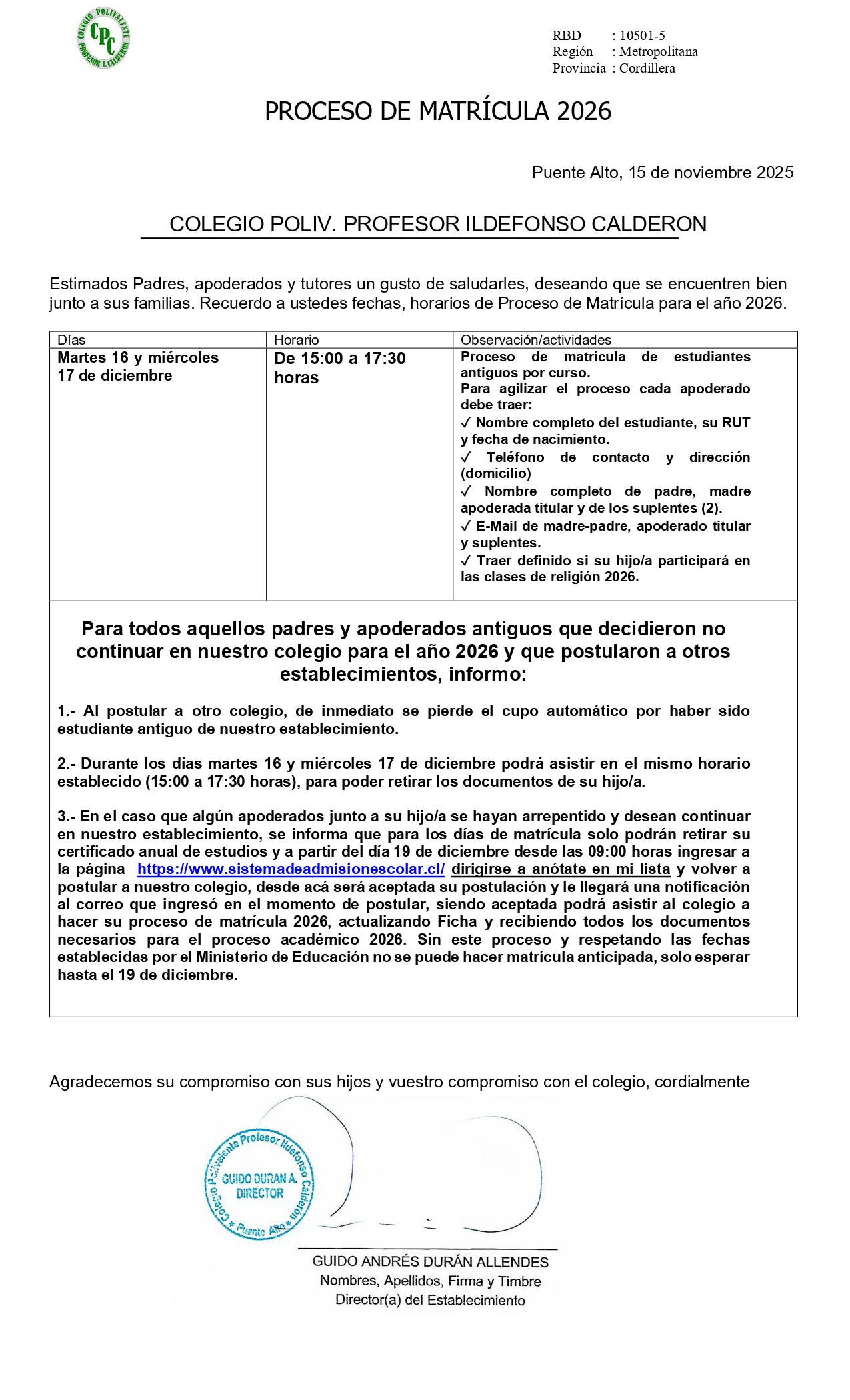 Matriculas, información… 15/12/2025 admin Navegación de entradas Entrada anteriorCapacitación de Profesores/as Diciembre de 2025, Diseño de experiencias de aprendizaje con Inteligencia artificial, CPIC.
